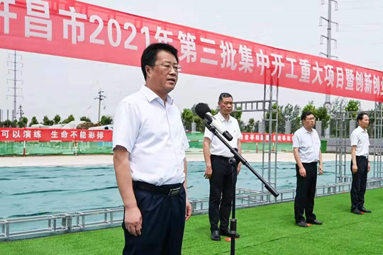 7月10日上午,河南省许昌市2021年第三批集中开工重大项目暨创新创业示范基地二期项目开工仪式顺利举行。许昌市委常委、纪委书记、监委主任方婷,魏都区委书记李朝锋,区人大常委会主任申健民,区政协主席杜晓辉,区委常委、区委办主任程中山,区委常委、区纪委书记、区监委主任徐光,魏都产业集聚区管委会主任楚文选,中航建设集团河南分公司总经理黄辰,魏都区政府相关部门、投资公司、产业集聚区、霸陵办事处等单位负责人参加活动。区委常委、常务副区长张挪威主持仪式。