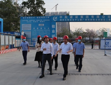 2023年2月21日,广东省住房和城乡建设厅建筑市场监管处副处长何志坚莅临华体会官方版网站登录入口承建的广州纳米生物安全中心暨广纳创新院总部园区项目(以下简称纳米项目),对纳米项目一期、二期建设工程智能建造项目试点工作开展情况进行实地考察调研,中航建设集团南方工程有限公司党支部书记徐刚迎接陪同。